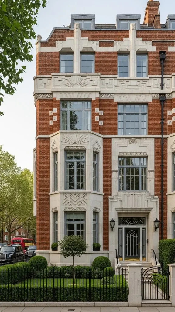 Bloomsbury features some rare and beautiful examples of Art Deco townhouses from the 1930s. This style is characterized by its use of curved corners, geometric patterns, and sleek white surfaces.