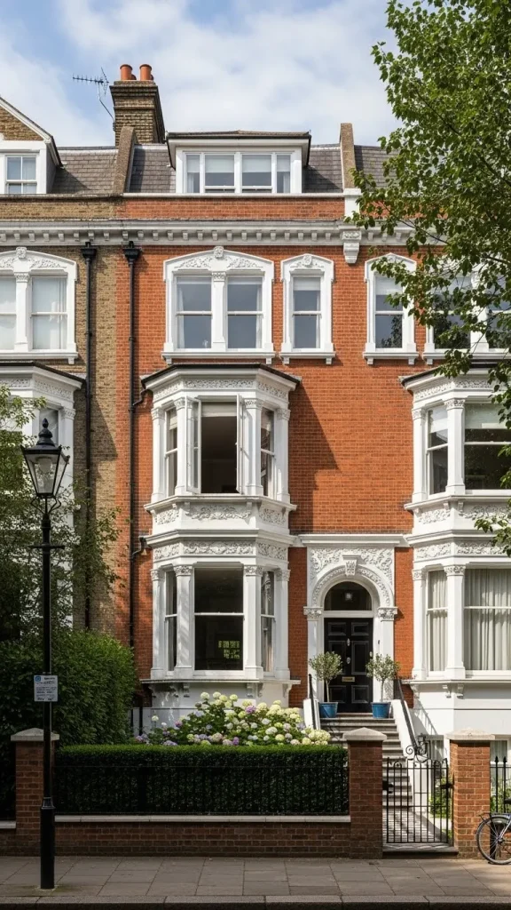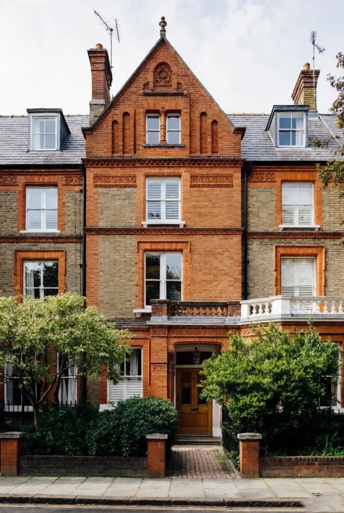 Victorian townhouses are celebrated for their warmth and the intricate decorative details that reflect the industrial and artistic confidence of the 19th century. These homes are often built with rich red bricks and feature ornate terracotta tiles.