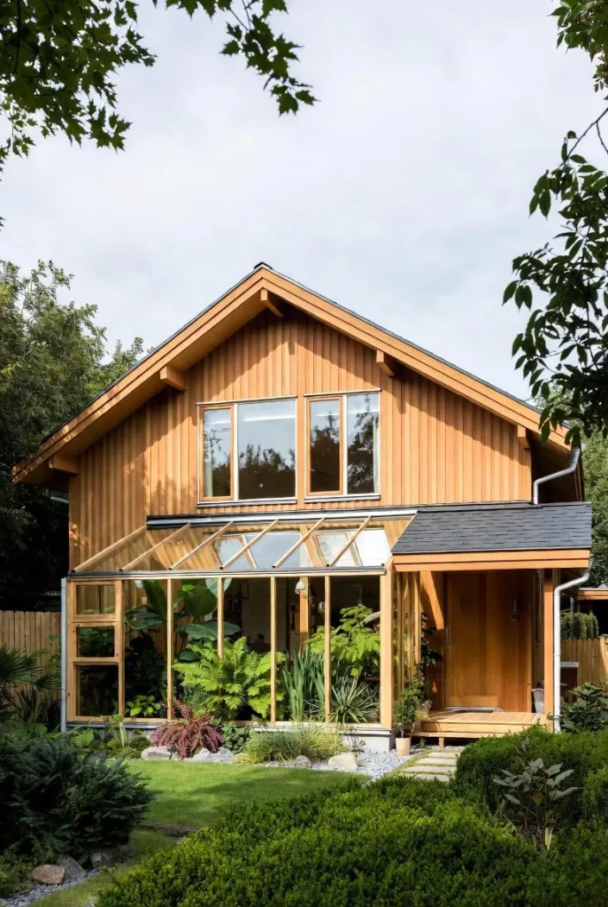 This unique style builds the house around an indoor garden. A central courtyard or atrium brings nature into the core. Glass walls surround this green space.