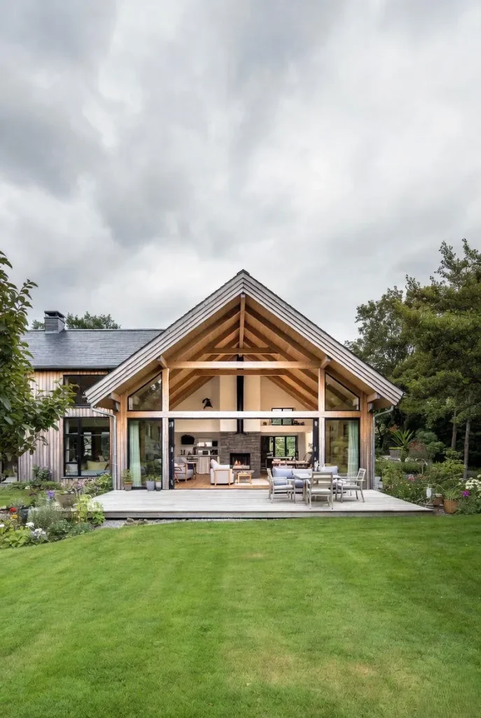 Repurposing agricultural buildings is a trend in Nordic architecture. These homes feature soaring vaulted ceilings and exposed beams. The scale is grand but the decor keeps it grounded.