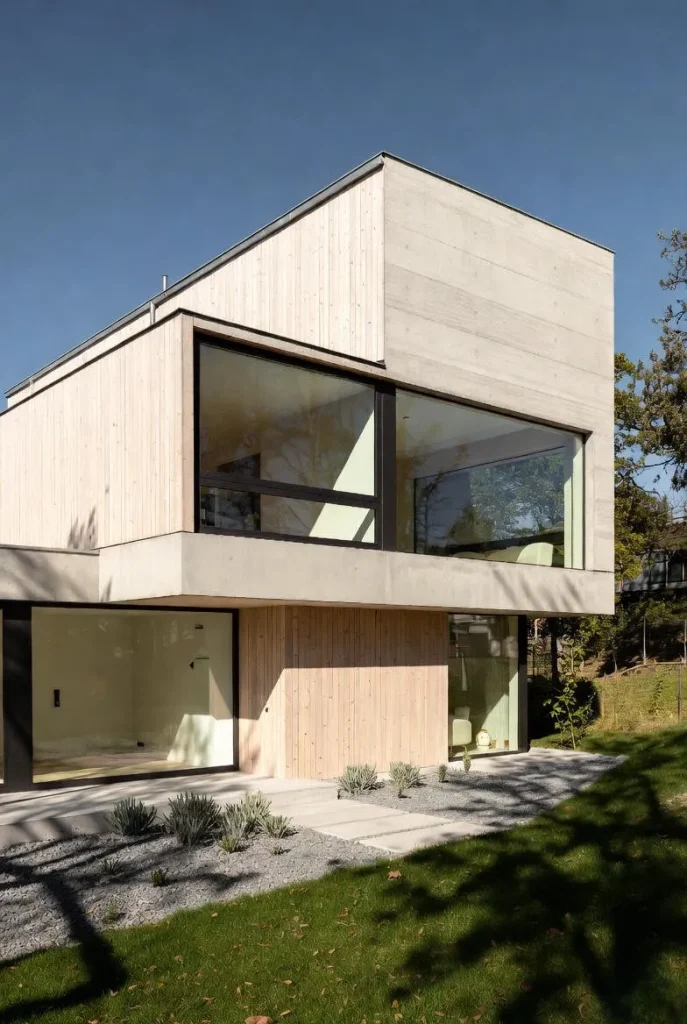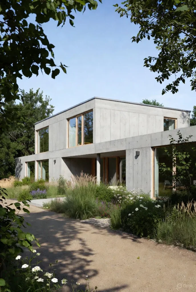 Concrete is embraced for its raw and honest beauty. These houses feature exposed concrete walls and floors. It creates a quiet and sound-dampened environment.