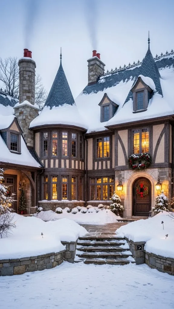 20 Enchanting Winter Mansions That Capture Holiday Magic