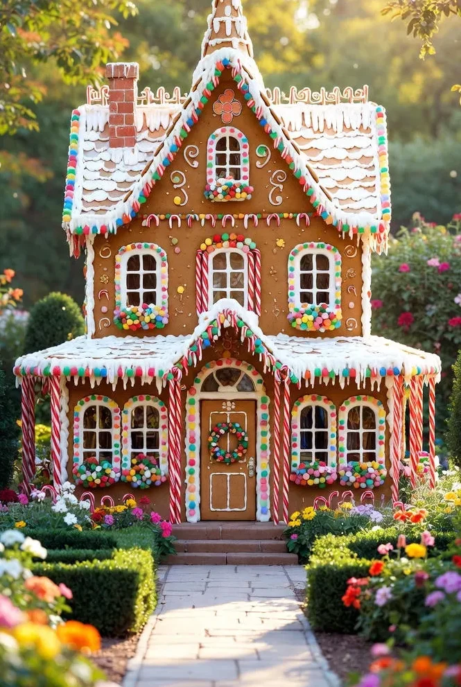 Candy cane motifs might appear in subtle ways. The house radiates happiness and invites smiles from passersby. It creates a storybook feeling that children adore.