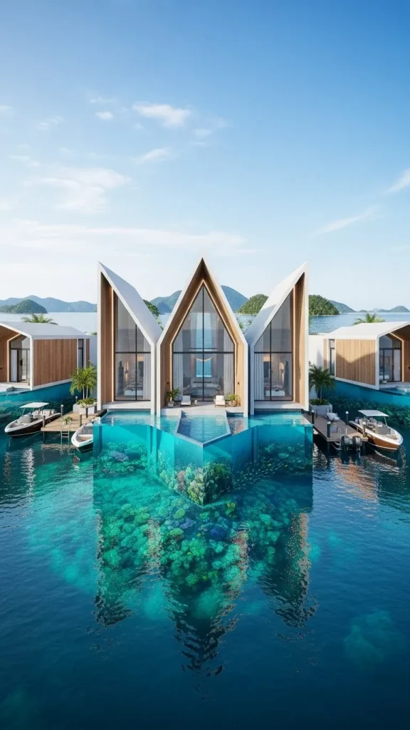 It offers a cool sleeping environment naturally due to water temperature. The structure is anchored firmly to the lake bed for stability. It is like having a personal aquarium in your bedroom walls.