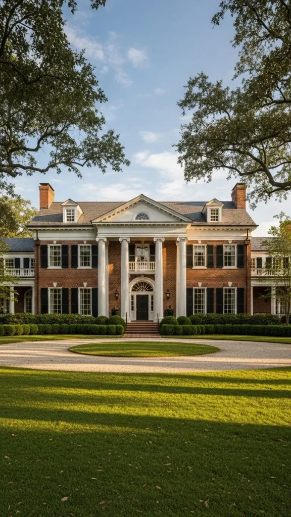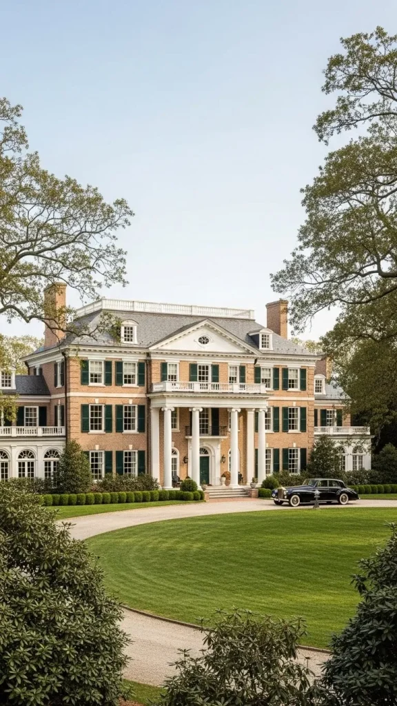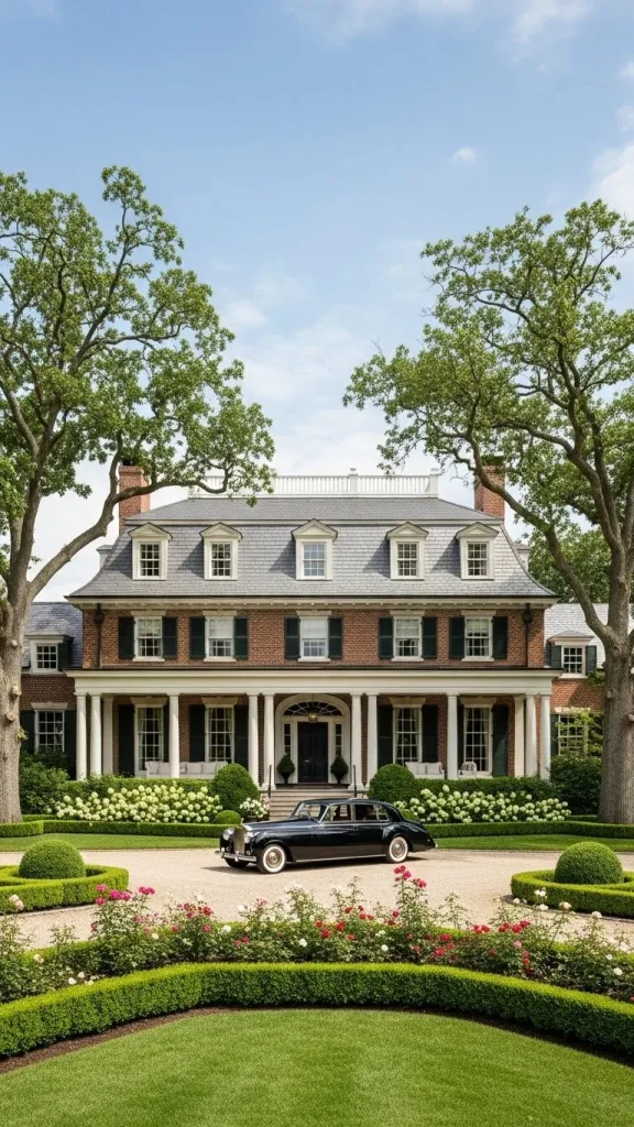 The Georgian Manor is the quintessential example of symmetry and order in residential design. It relies on a mathematical approach to beauty that creates a sense of permanent stability.