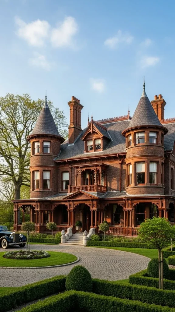 It is a style that feels very royal and established, suitable for large families and extensive entertaining. The complexity of the roofline makes it a standout in any environment.