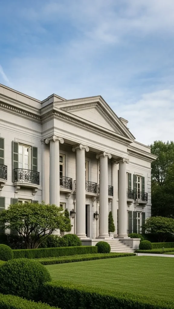 Greek Revival architecture sought to bring the dignity of ancient temples to the domestic sphere. It is dominated by massive white columns and a strong triangular pediment over the porch.