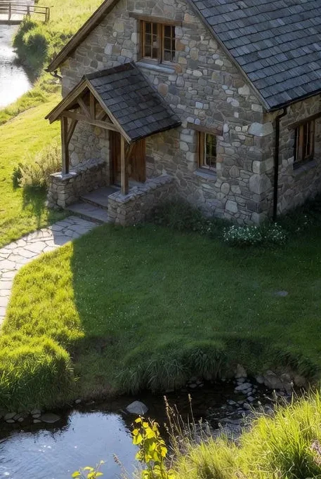 Whimsical, with crooked chimneys, swayed roofs, and irregular stone. The goal is to make it look like an illustration from a storybook. Nothing is perfectly straight; curves and charm rule the design.