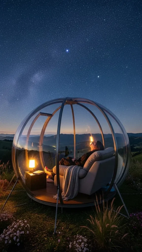 A smaller, portable version of the mirror cabin mentioned earlier. It is often just large enough for a queen bed and a view. It provides an intense, immersive nature experience with zero distractions.