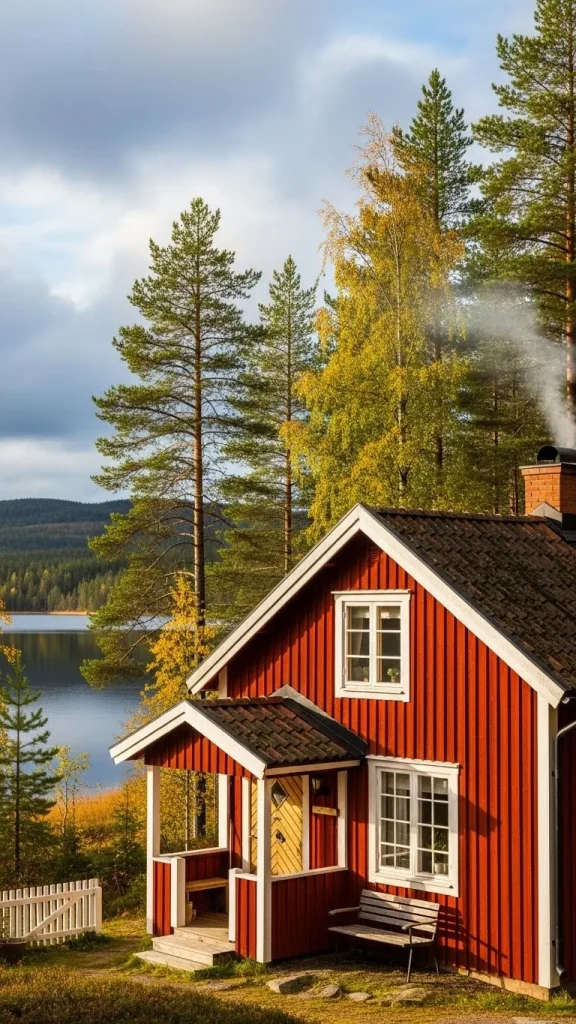 Famous in Sweden and Norway, these cabins are painted a deep “Falu red” with white trim. The color was historically a sign of status and protects the wood from harsh weather. The design is simple, functional, and undeniably charming.
