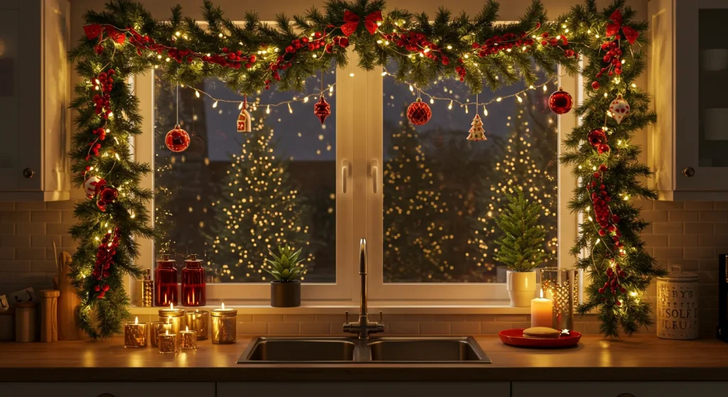 Draping garlands over windows, doorways, or along the tops of cabinets instantly adds a touch of natural elegance and festive cheer. The lush greenery brings the beauty of the outdoors inside, creating a classic Christmas look. This simple addition can dramatically transform the ambiance of your kitchen.