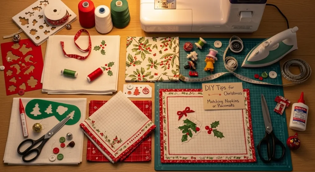 Create a fully coordinated holiday tablescape by making matching napkins or placemats to go with your new table runner. Use the same fabric or a complementary one from the same collection. This will give your dining table a polished and professionally designed look.