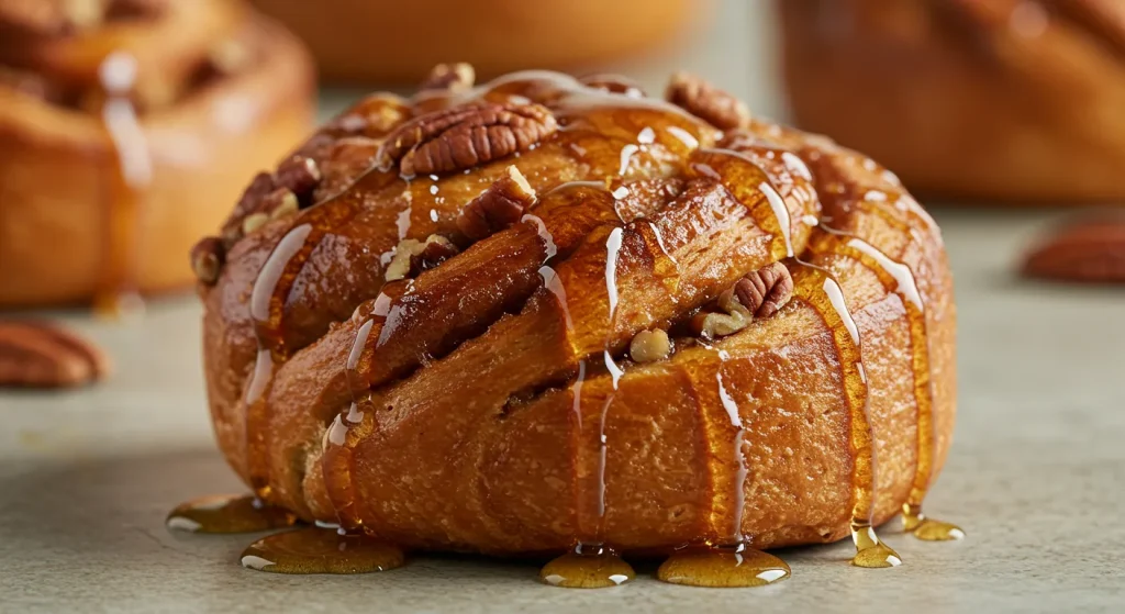 Pure maple syrup provides a wonderful, rich, and complex sweetness that is perfect for cinnamon rolls, especially when paired with toasted pecans.