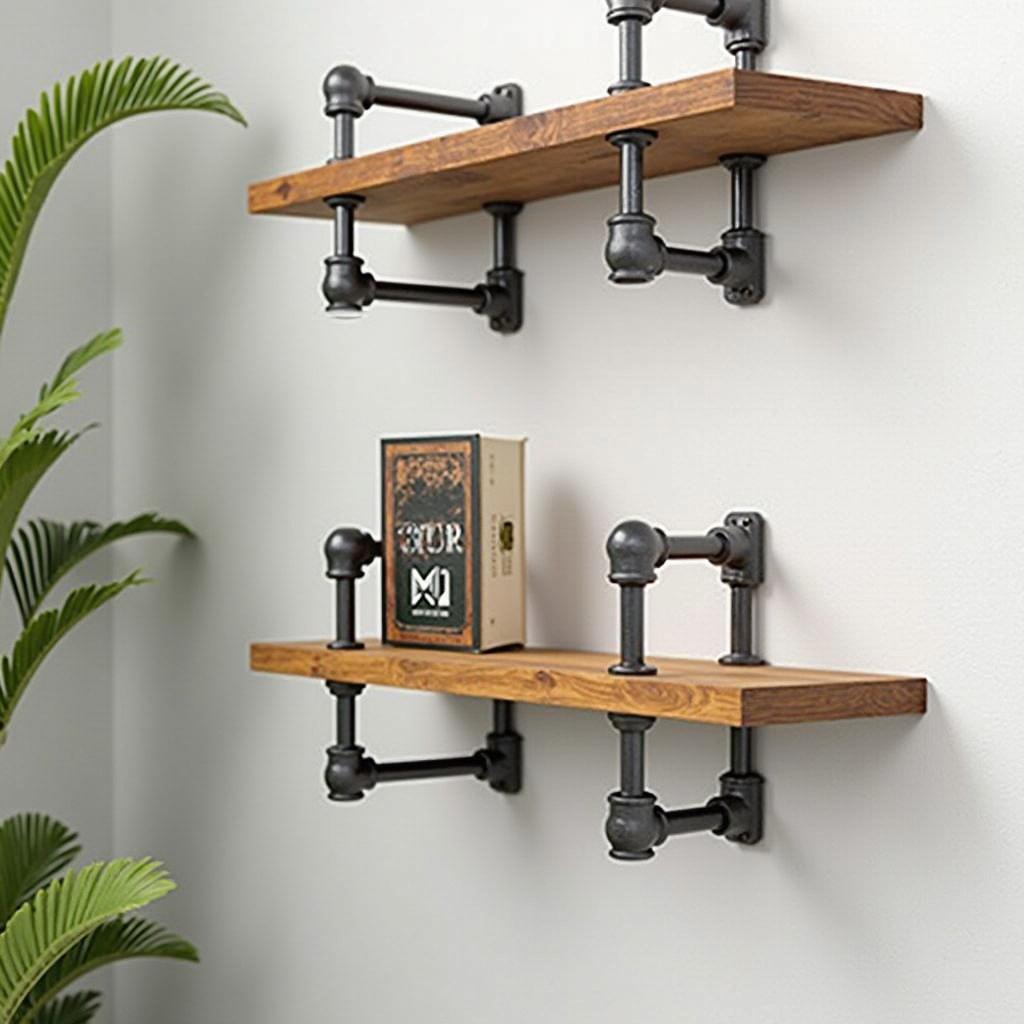 Give your shelves a cool, industrial edge by using metal pipes and fittings as supports for wooden planks. This style combines the warmth of wood with the raw, utilitarian look of metal for a striking contrast.