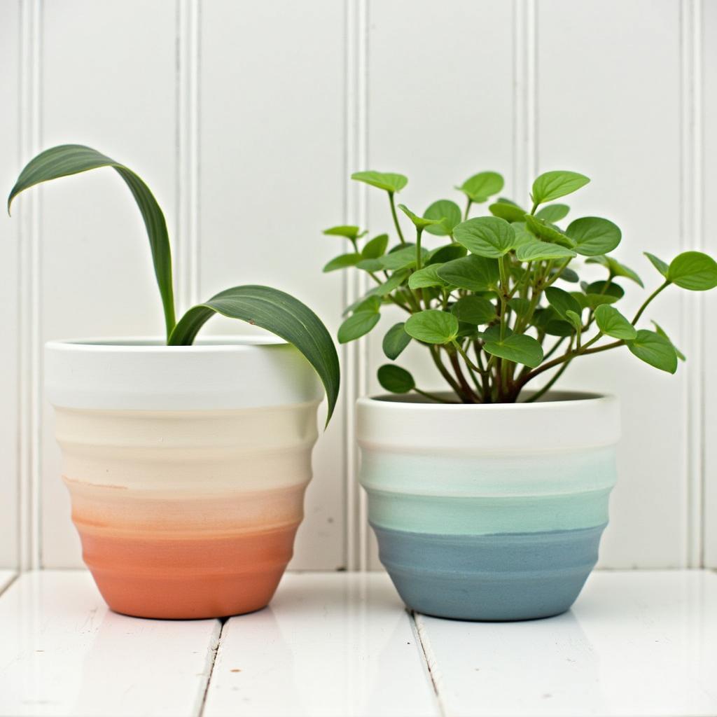 Use two or three shades of the same color to create a soft, gradient ombre effect on your pots. This painting technique is stylish and sophisticated, adding a gentle transition of color that is visually pleasing.