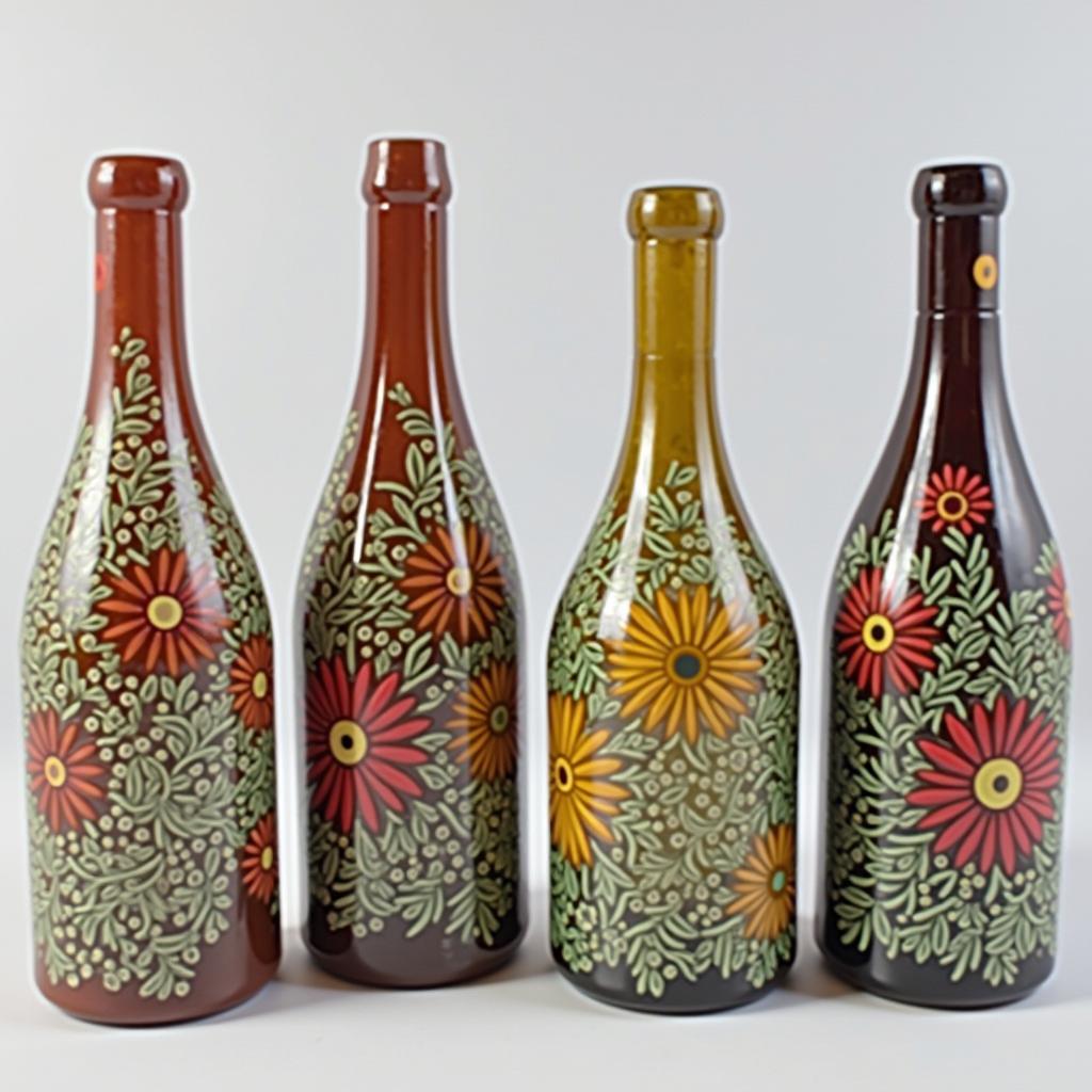 Use spray paint for an even, opaque finish or acrylic craft paint for more detailed, hand-painted designs. A collection of painted bottles in varying heights and shapes makes a beautiful display.