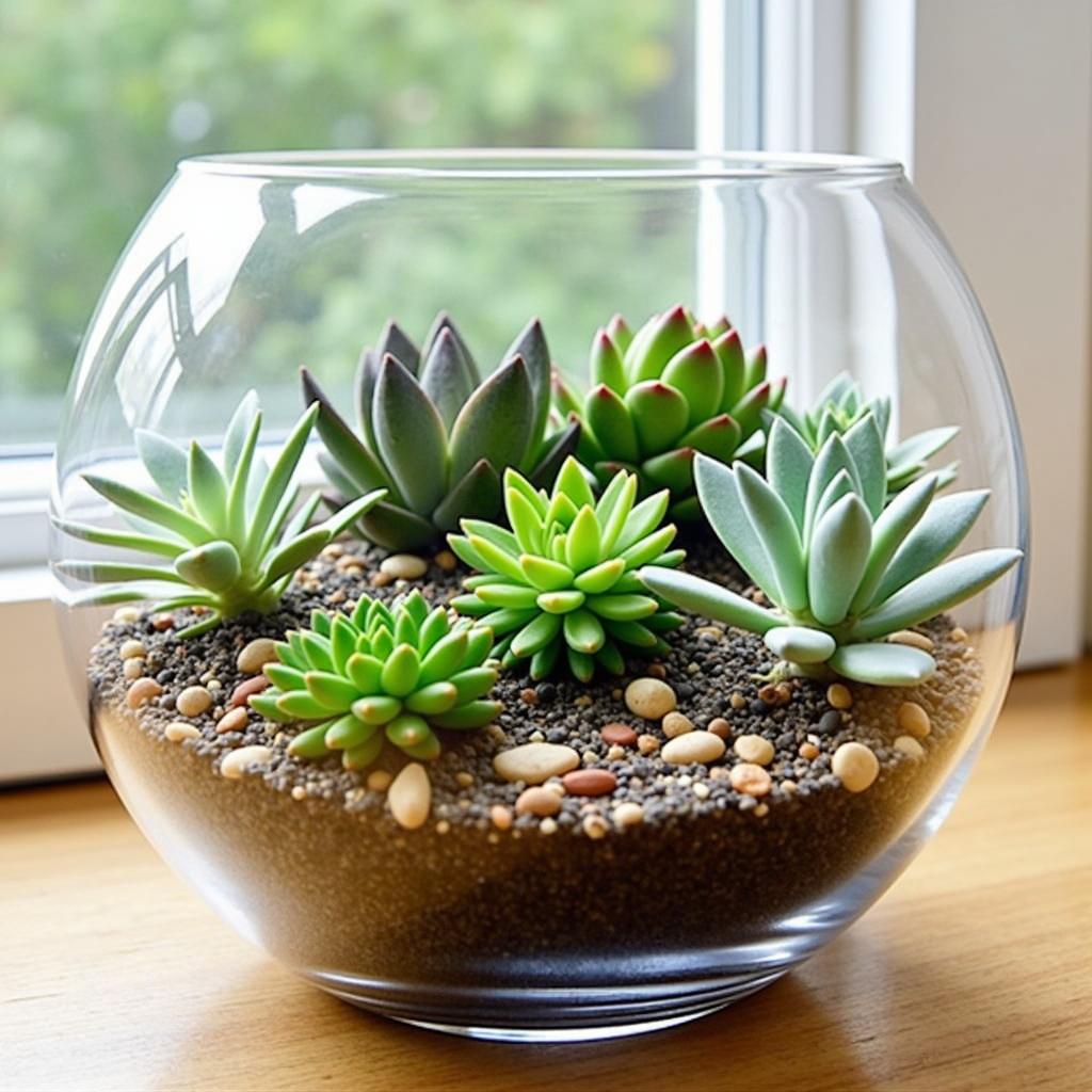 Create your own small glass garden with layers of succulents, moss, pebbles, and sand for a lovely, low-maintenance display. This project allows you to play with scale and composition, resulting in a tiny living world that adds a green, calming touch to a desk, shelf, or coffee table.