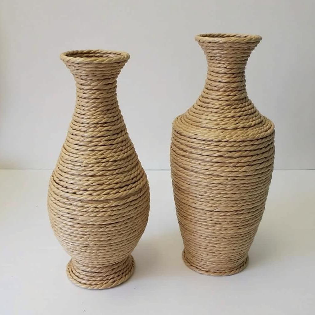 For a rustic, coastal, or boho-inspired look, wrap empty glass bottles tightly in natural twine or rope. Start at the bottom and use a hot glue gun to secure the twine as you wrap your way up the bottle.
