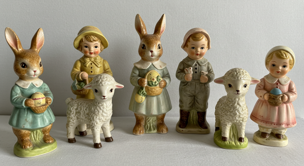 Beyond just bunnies and chicks, there is a whole world of other vintage porcelain or ceramic figurines that can transport you back in time.