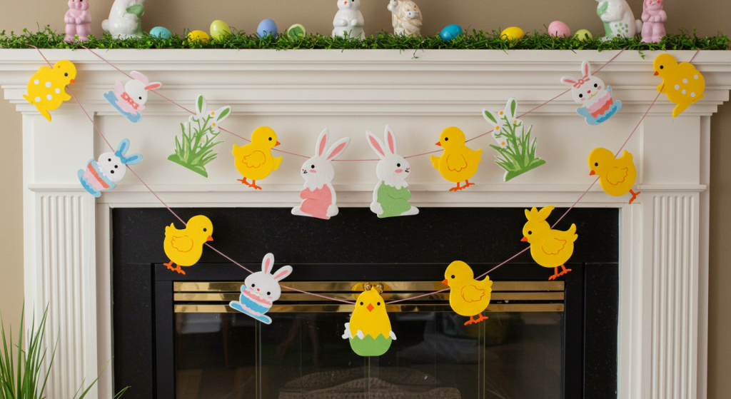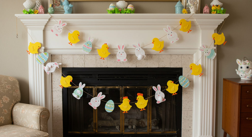 Easter garlands made of materials like felt, paper, or die-cut cardboard were incredibly popular in mid-century homes and classrooms. They have a flat, graphic quality that is distinctly retro.