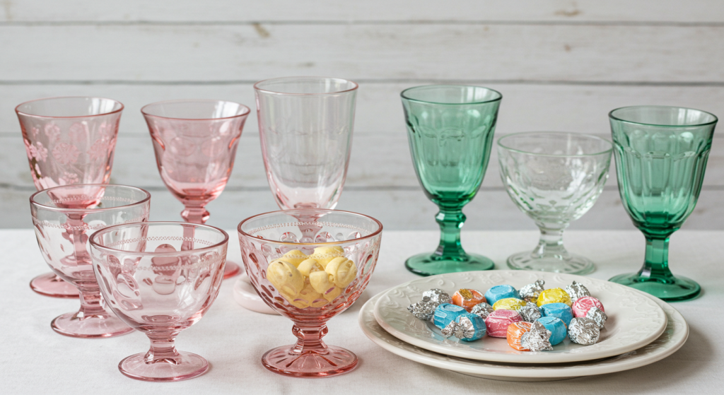 Using this glassware is a wonderful way to bring authentic, functional vintage pieces into your celebration. They add color, sparkle, and a sense of history to your table.