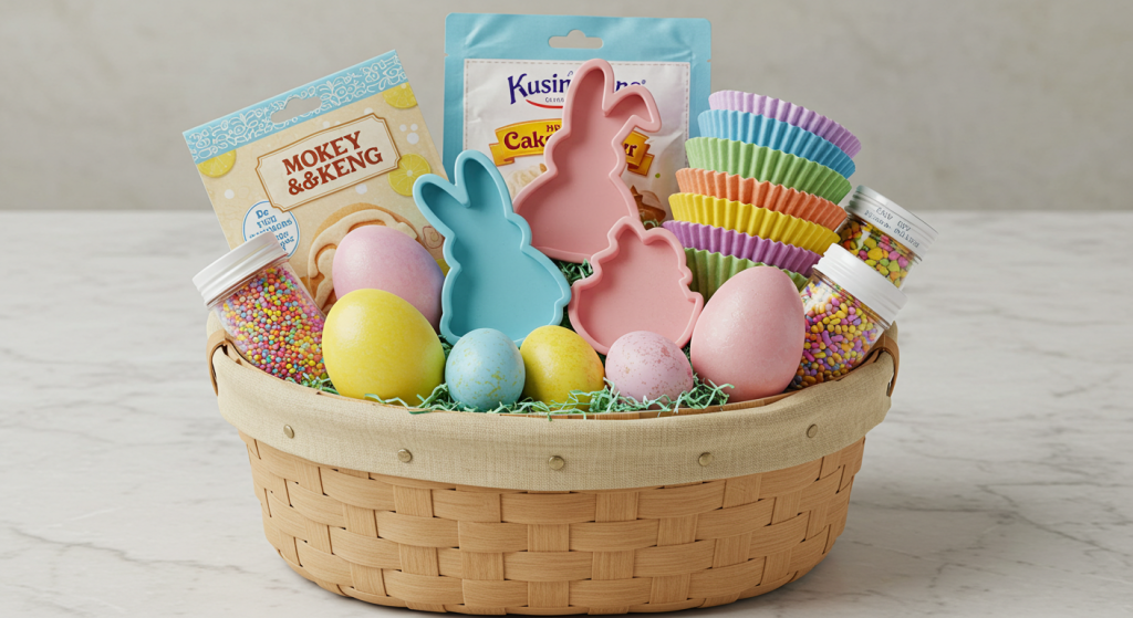 You can include a variety of fun and practical items. Think adorable, spring-themed cookie cutters, festive cupcake liners, a collection of colorful sprinkles, and a high-quality baking mix to get them started.