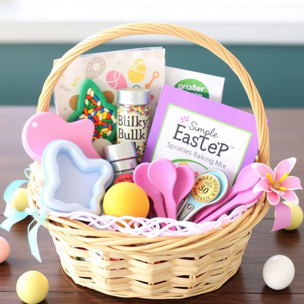 If your child enjoys spending time in the kitchen, a baking-themed basket is perfect. Include cookie cutters, sprinkles, measuring spoons, and a simple baking mix to get them started.