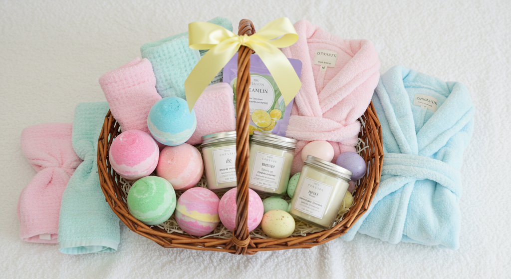 Create a relaxation-themed Easter basket with self-care items such as bath bombs, scented candles, face masks, and a soft robe. This is a great idea for teens and adults who need a little pampering.