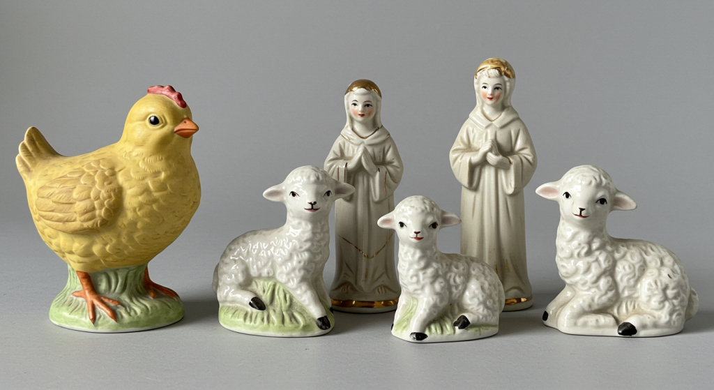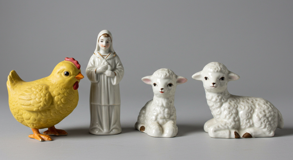 Antique porcelain Easter figurines, such as fluffy chicks, gentle lambs, or religious symbols, are perfect for adding a delicate and meaningful touch to your home.