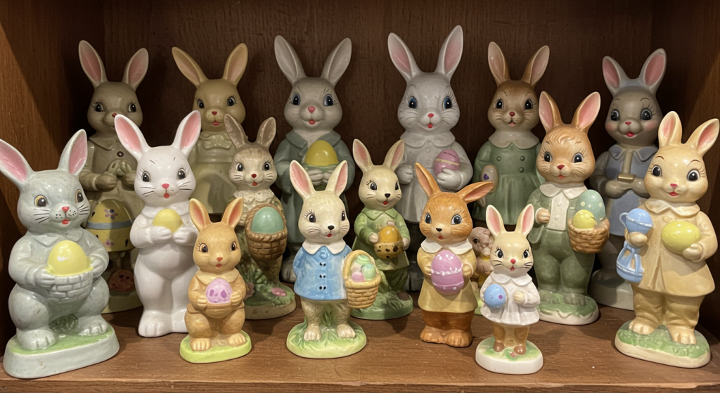 Nothing says Easter quite like the iconic Easter bunny. Vintage Easter bunny figurines, often crafted from delicate ceramic or fine porcelain, are perfect for adding a deeply nostalgic touch to your decor.