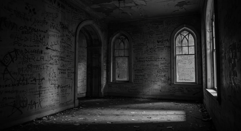- At the end of the hall, have the words “LOOK BEHIND YOU” scrawled.