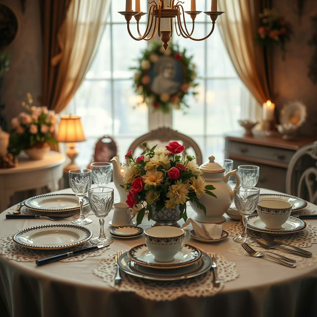 Show off mismatched tea cups, delicate china plates, or cut-glass goblets on open shelves or in a glass cabinet. These small details create an elegant, vintage aesthetic.