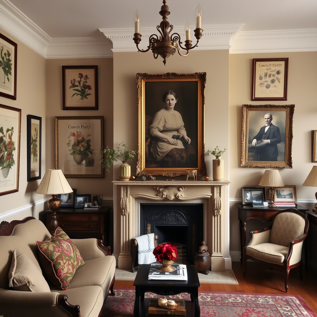 Botanical prints, vintage advertisements, black-and-white photography, and classic oil paintings help create a nostalgic atmosphere. Look for unique pieces at flea markets or online shops.