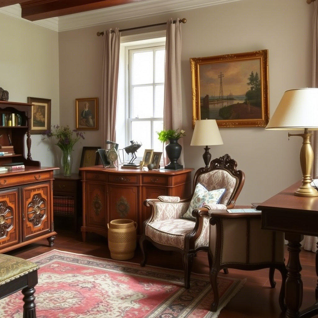 Vintage-style chandeliers, sconces, or Tiffany lamps can transform a room’s ambiance. Opt for Edison bulbs or candle-style lights for an authentic antique feel.