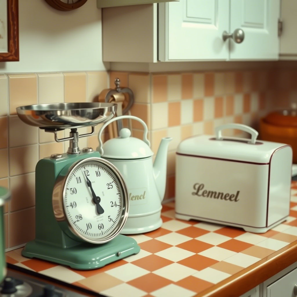 Incorporate vintage kitchen scales, enamel teapots, or a 1950s bread box to enhance your kitchen’s nostalgic appeal. Even a simple collection of wooden spoons or metal canisters can make a difference.