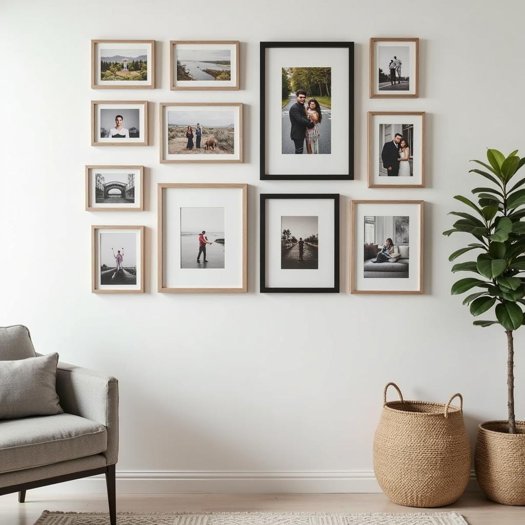 - Maintain consistent spacing between your frames (usually 2-3 inches) for a clean, cohesive look.
