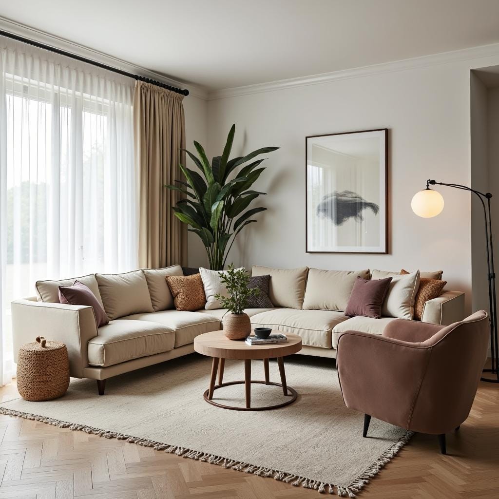 - Choose accent pieces with interesting materials, like a marble-topped side table or a rattan chair.