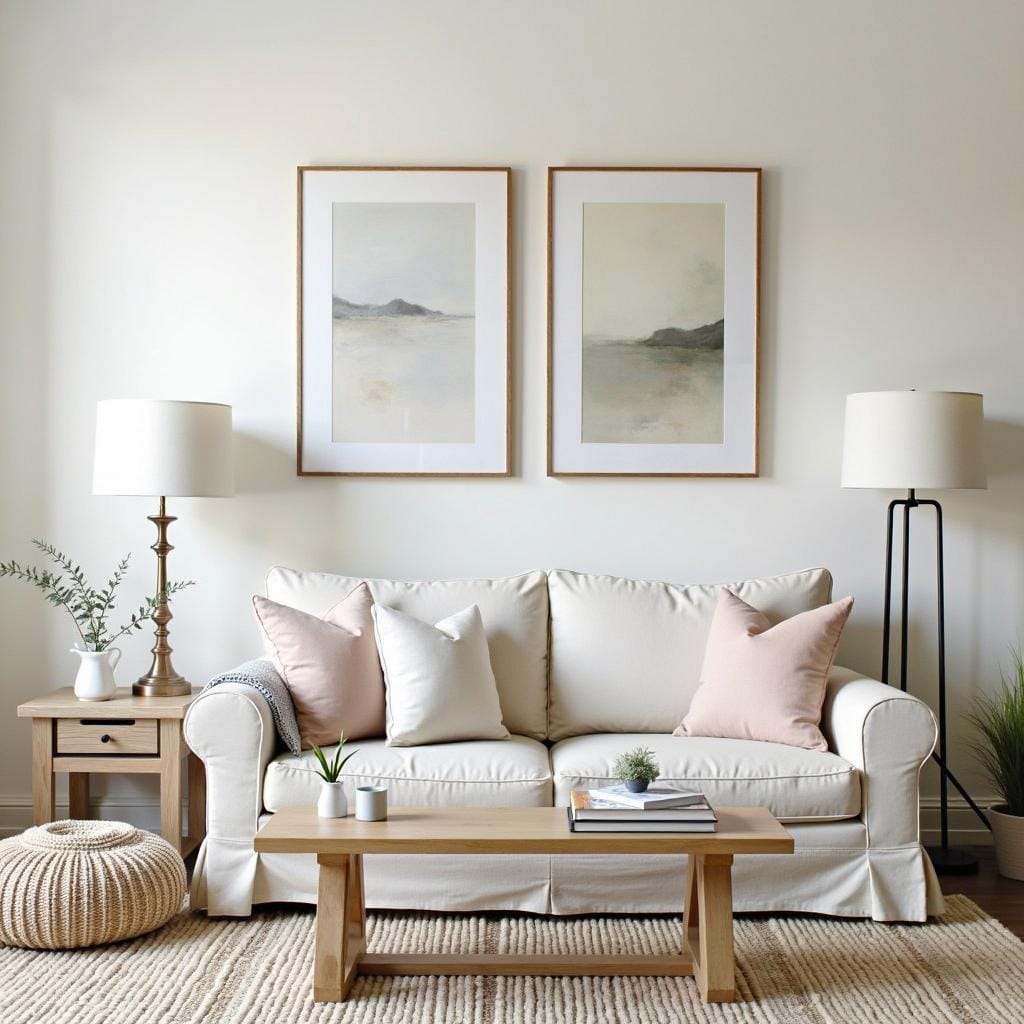 - For a formal, traditional look, create a symmetrical grid using identical frames and similar-themed art (like a series of botanical prints).
