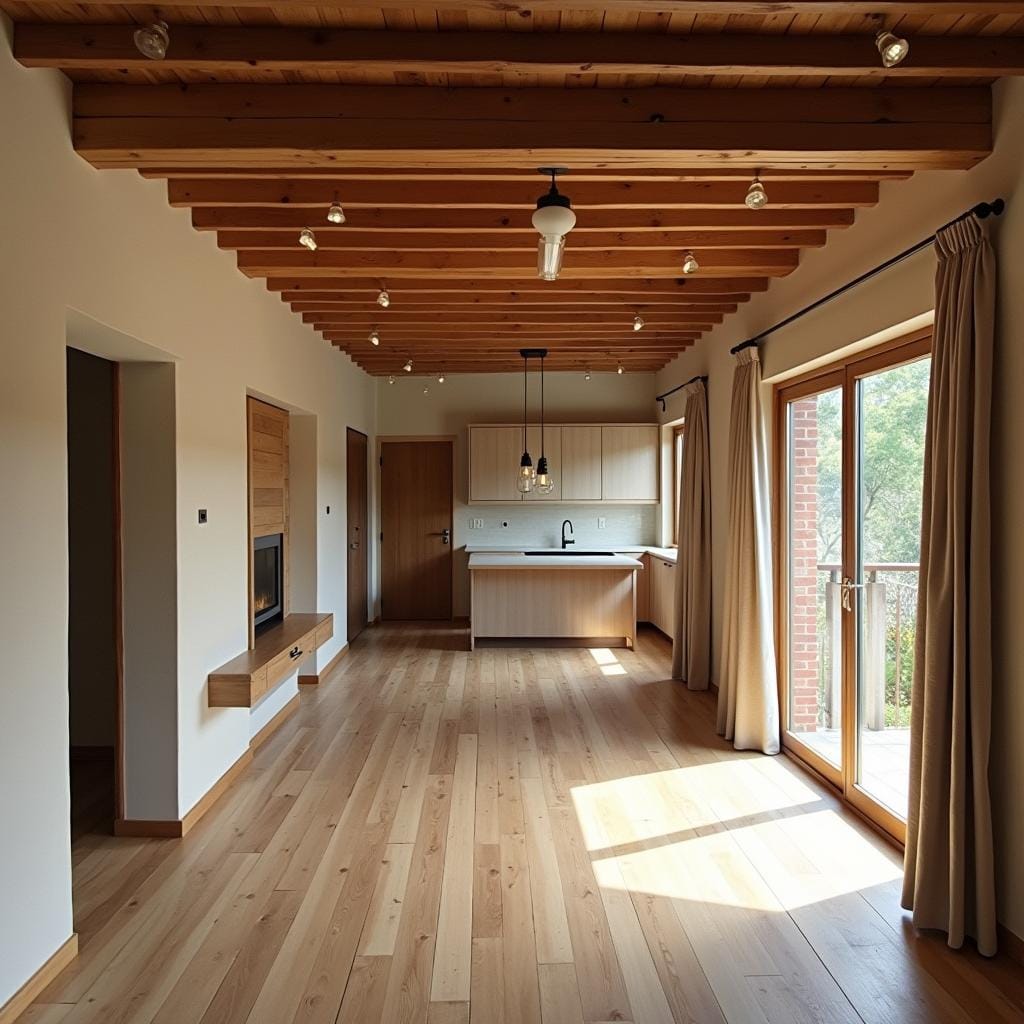 - Use beams to visually define a space, such as separating the kitchen from the living area in an open-plan home.