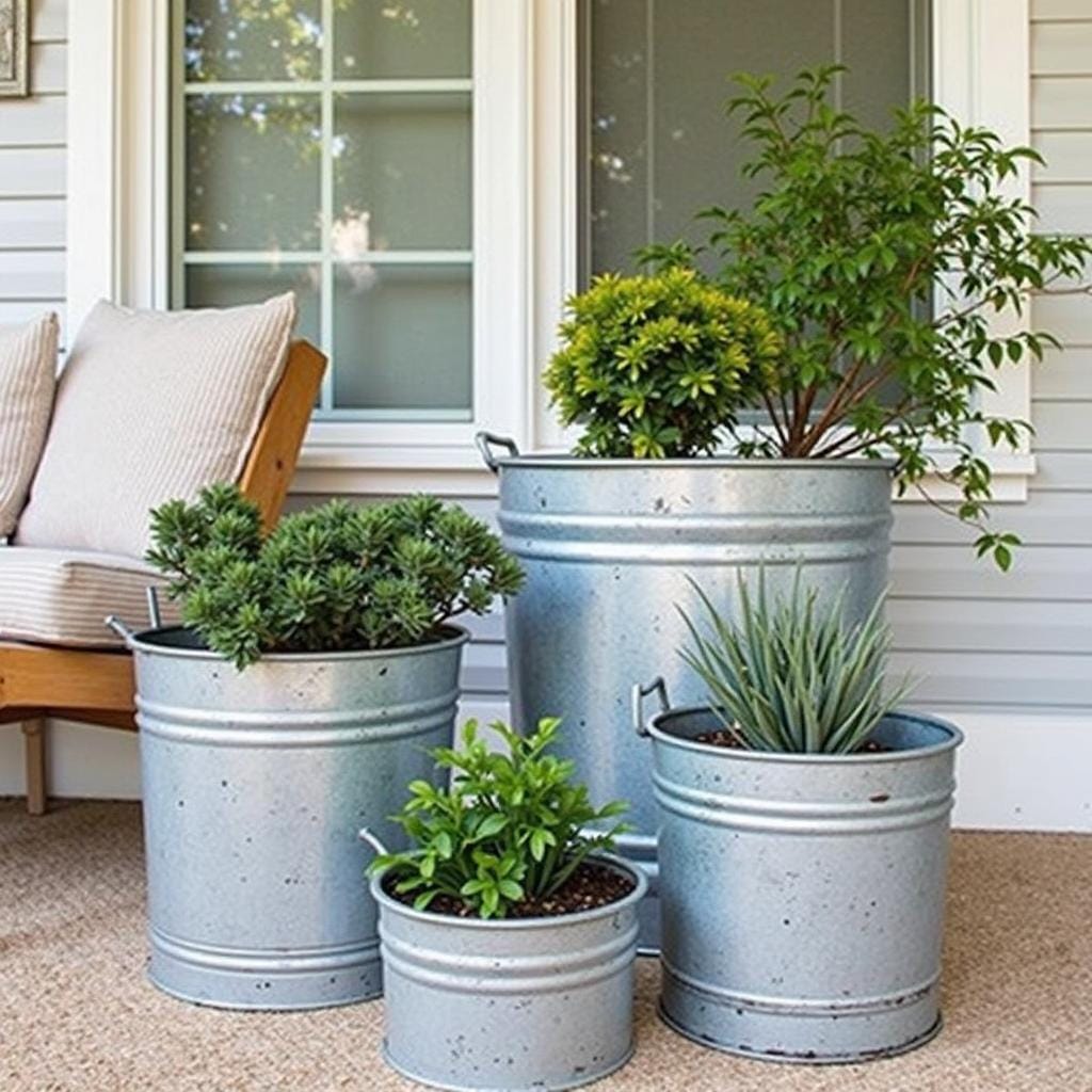 - Use galvanized planters or buckets on your front porch or patio for flowers and herbs.
