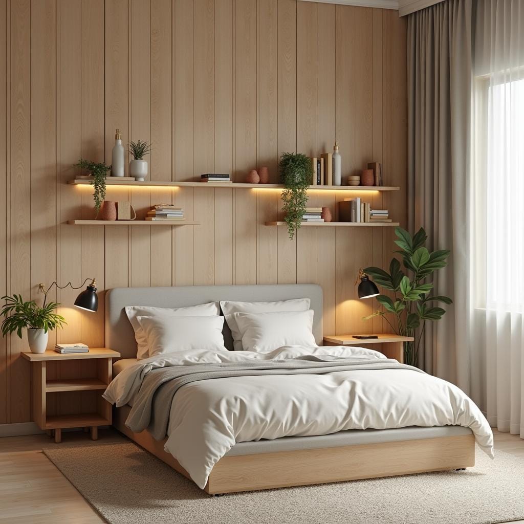 - A reclaimed wood headboard adds instant warmth and a focal point to a bedroom.