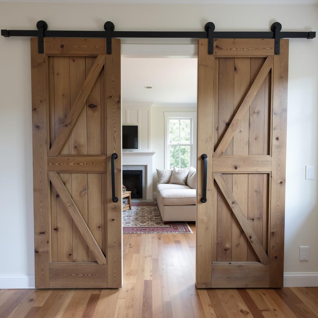 - Consider a double barn door for very wide openings, like between a living room and dining room.