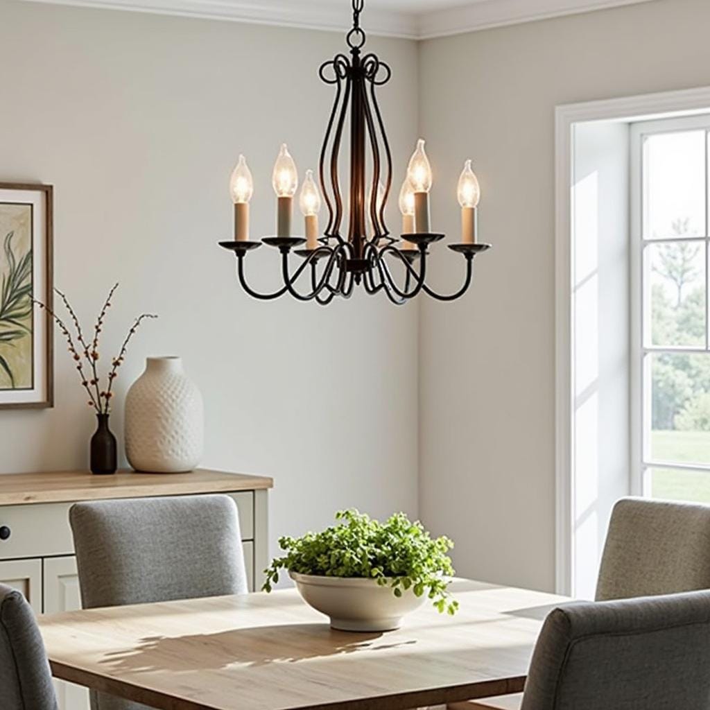 - Hang lightweight decor, like dried herbs or a simple wreath, from a central beam.