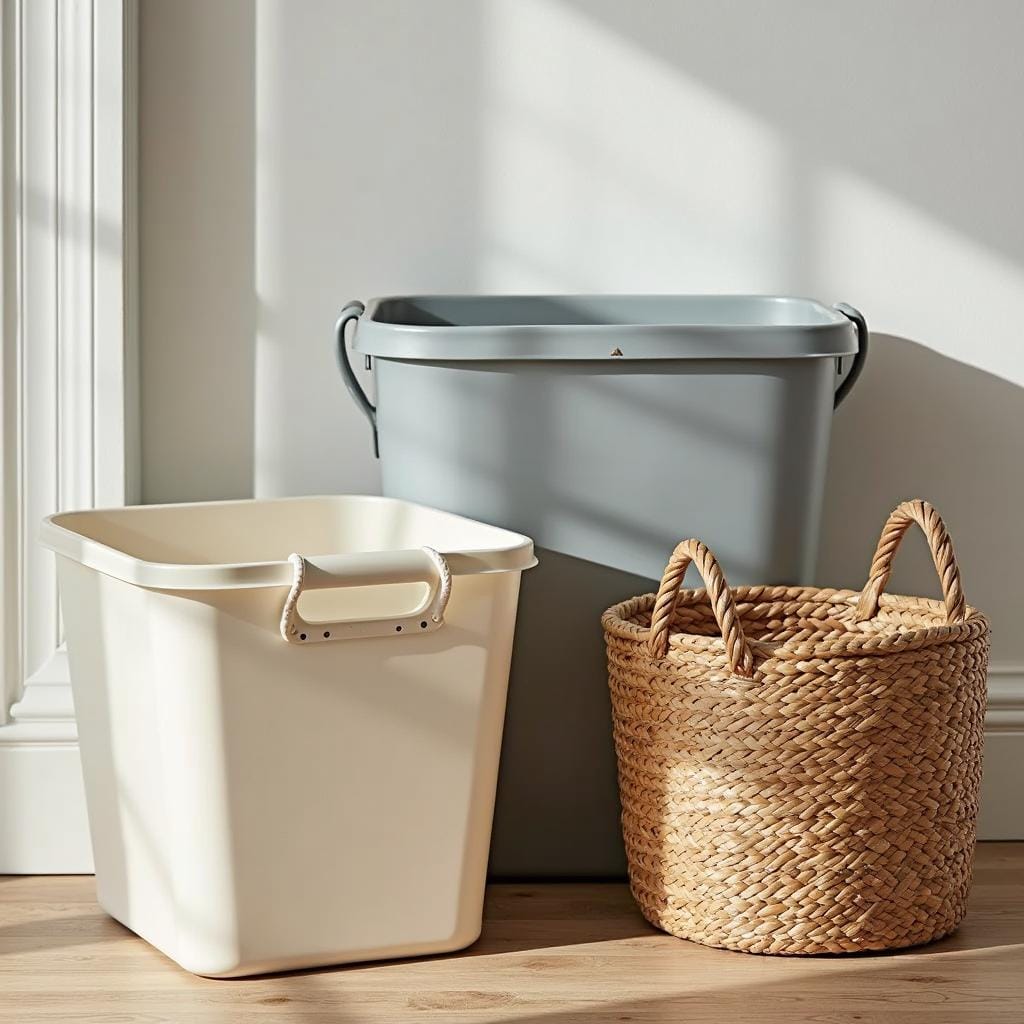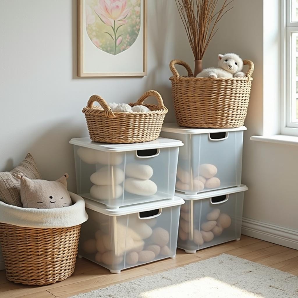 Replace plastic bins with woven baskets. They add texture and warmth while keeping your space organized.