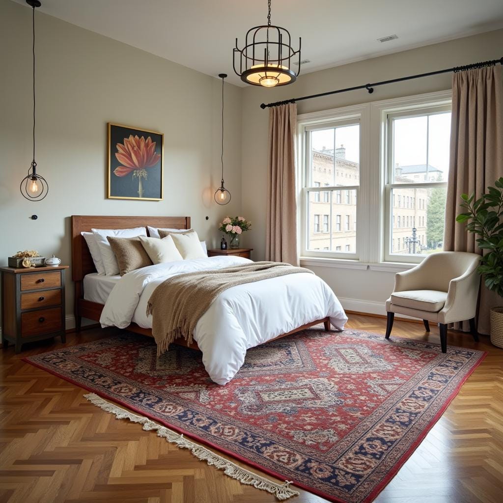 - A statement rug is one of the most effective ways to introduce color and pattern into a bedroom.