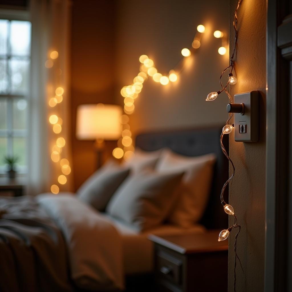 - Drape string lights or “fairy lights” behind a sheer curtain or around a headboard for a magical, whimsical feel.