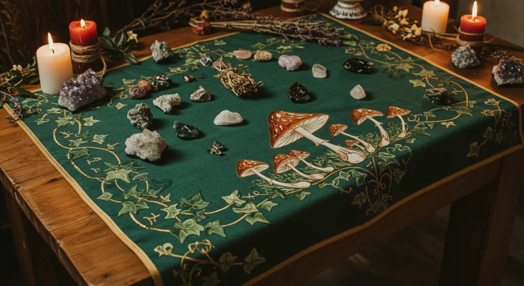 The cloth can be changed to align with the seasons or specific magical workings. It adds a layer of intention and beauty to your sacred space.