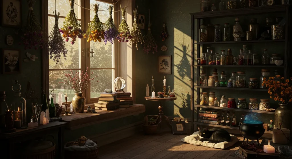 A witchy home is a place of learning and introspection. Tools for divination and a well-stocked library are essential for honing your intuition and expanding your magical knowledge.