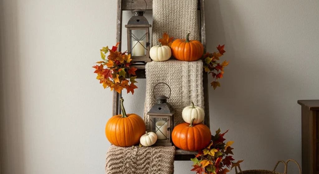 44. A Vintage Ladder DisplayLean a small, rustic wooden ladder against a wall and drape it with cozy plaid blankets or a small wreath.Low to Medium ($30 – $80)