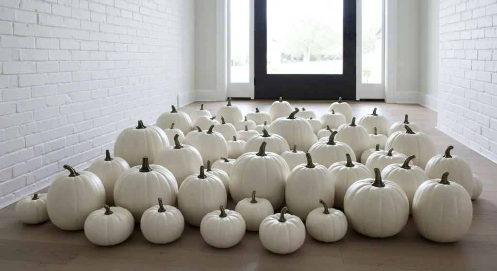 Pro Tip: If you cannot find enough real white pumpkins, you can easily paint orange craft pumpkins with a matte or chalky white paint for a similar effect.